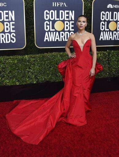 Jodie Comer, from 'œKilling Eve," sported another fashion trend of the evening - puffy sleeves - in emerald green. Kidman represented for the reds in a strapless look with subtle draping and a short train. So did Scarlett Johansson in a longer train and bustle bow custom look in crimson from Vera Wang and Olivia Colman in custom raspberry from the Emilia Wickstead Collection (big sleeves, check).
