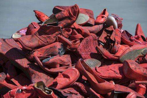 Activists placed hundreds of painted-red women's shoes on Mexico City's sun-drenched main square Saturday to call attention to gender-based violence in a country where, on average, 10 women and girls are murdered each day and less than 10 percent of the cases are ever solved.