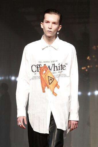 A model presents a creation for Off White Men's Fall/Winter 2019-2020 fashion collection presented in Paris, Wednesday Jan. 15, 2020. (AP Photo/Thibault Camus) The Associated Press
