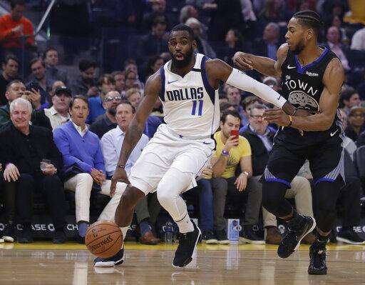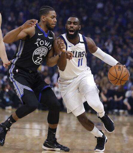 Dallas Mavericks' Tim Hardaway Jr., left, drives the ball against Golden State Warriors' Glenn Robinson III during the first half of an NBA basketball game Tuesday, Jan. 14, 2020, in San Francisco. (AP Photo/Ben Margot) The Associated Press