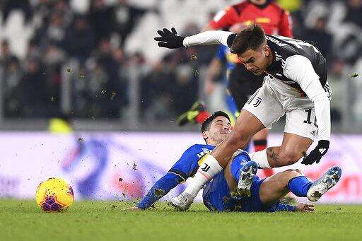 Juventus' Paulo Dybala, right, in action during the Italian Serie A Soccer match between Juventus and Parma at the Allianz Stadium in Torino, Italy, Sunday, Jan. 19, 2020. (Fabio Ferrari/LaPresse via AP) The Associated Press