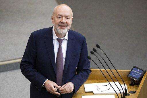 Pavel Krasheninnikov, lawmaker and co-chair of the constitutional reform working group speaks during a session at the Russian State Duma, the Lower House of the Russian Parliamentin Moscow, Russia, Thursday, Jan. 23, 2020. The Russian lower house of parliament, the State Duma, holds the first of three readings and a vote on a draft bill on constitutional proposals put forward by the Kremlin. The package of constitutional amendments is widely seen as an attempt to secure President Vladimir Putin's grip on power well after his current term ends in 2024. (AP Photo/Alexander Zemlianichenko)