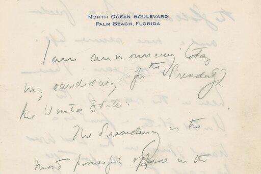 Among the items are a letter from Kennedy to Brown written days before the assassination. In it Kennedy thanks Brown for supporting his tax-reform program. There's also a handwritten note from President Lyndon Johnson sent 10 days after he succeeded Kennedy. Johnson wrote: 'œPat, I'm depending on you in the West.'ť