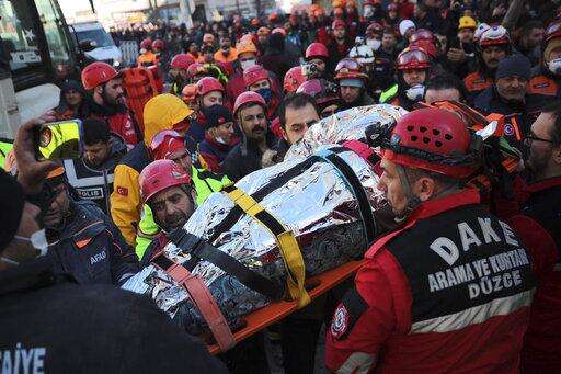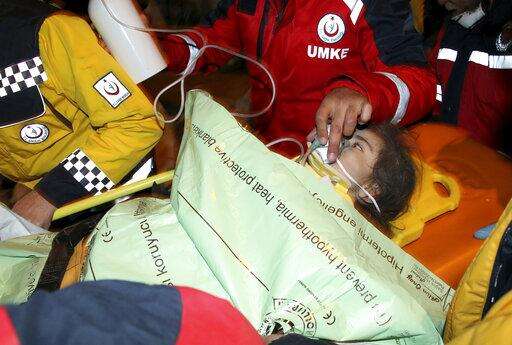 ANKARA, Turkey (AP) - Working against the clock in freezing temperatures, Turkish rescue teams pulled more survivors from collapsed buildings Sunday, days after a powerful magnitude 6.8 earthquake hit the country's east. Rescued survivors wept with gratitude for their efforts.