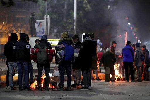 People gather around fires to spend the night following Friday's earthquake that destroyed their houses, in Elazig, eastern Turkey, late Saturday, Jan. 25, 2020. More than 24 hours after a powerful earthquake hit eastern Turkey rescuers continued to pull survivors from under collapsed buildings Sunday. (Ugur Can/DHA via AP)