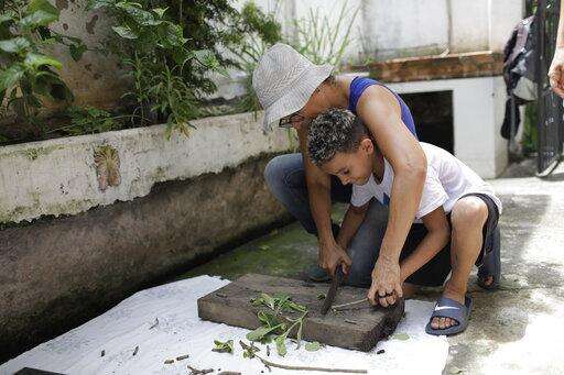 In this Jan. 6, 2020 photo, children learn gardening skills in Rio's first favela, Morro da Providencia, Rio de Janeiro, Brazil. If kids spend their waking days exposed only to alleys, bullets, empty drug capsules and trash, Roque argues, they'll struggle to contribute good to the world. They need places to play and pick flowers. (AP Photo/Silvia Izquierdo) The Associated Press