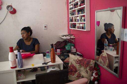 In this Jan.9, 2020 photo, hairdresser Ingrid Rocha waits for customers at a salon built over a sewage canal at the Arara Park favela of Rio de Janeiro, Brazil. It's so hot that her air conditioning unit does nothing to cut the heat, so clients only show up after 4 p.m. (AP Photo/Silvia Izquierdo) The Associated Press