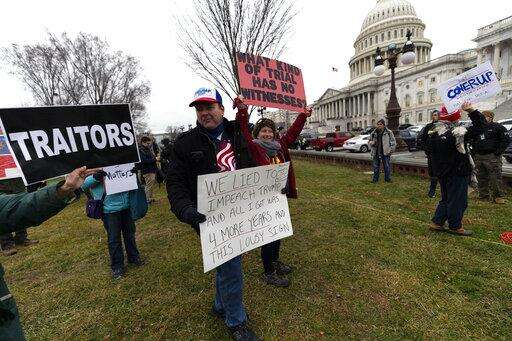 Activists gather on the East Front of the Capitol after the impeachment acquittal of President Donald Trump, on Capitol Hill, Wednesday, Feb. 5, 2020 in Washington. (AP Photo/Alex Brandon) The Associated Press