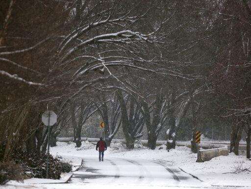 A winter storm brought snow to the Tulsa, Okla. area on Wednesday, Feb. 5, 2020. Snowfall totaling up to 5 inches is expected to fall throughout the Tulsa region. (John Clanton/Tulsa World/Tulsa World via AP)