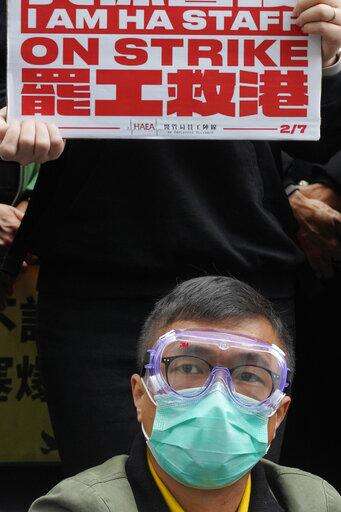 Medical staff strike over coronavirus concerns outside government headquarters in Hong Kong, Wednesday, Feb. 5, 2020. In Hong Kong, hospitals workers are striking to demand the border with mainland China be shut completely to ward off the virus, but four new cases without known travel to the mainland indicate the illness is spreading locally in the territory.(AP Photo/Vincent Yu) The Associated Press