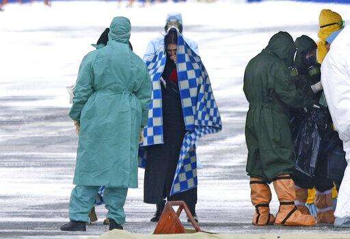 A group of medical personnel meet people, carried by a Russian military plane at an airport outside Tyumen, Russia, Wednesday, Feb. 5, 2020. Russia has evacuated 144 people, Russians and nationals of Belarus, Ukraine and Armenia, from the epicenter of the coronavirus outbreak in Wuhan, China, on Wednesday. All evacuees will be quarantined for two weeks in a sanatorium in the Tyumen region in western Siberia, government officials said. (AP Photo/Maxim Slutsky) The Associated Press