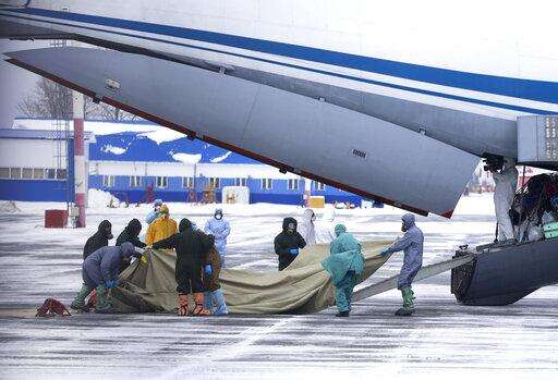 A group of medical personnel prepare to meet 80 people, accompanied by medical specialists, carried by a Russian military plane at an airport outside Tyumen, Russia, Wednesday, Feb. 5, 2020. Russia has evacuated 144 people, Russians and nationals of Belarus, Ukraine and Armenia, from the epicenter of the coronavirus outbreak in Wuhan, China, on Wednesday. All evacuees will be quarantined for two weeks in a sanatorium in the Tyumen region in western Siberia, government officials said. (AP Photo/Maxim Slutsky) The Associated Press