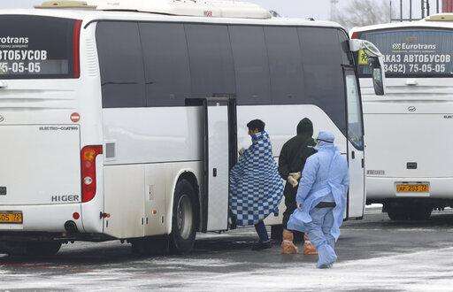 In Russia, two military planes with a total of 144 people - Russians and nationals of Belarus, Ukraine and Armenia - landed in Tyumen on Wednesday. The Defense Ministry says none of the evacuees has shown signs of being infected with the virus.