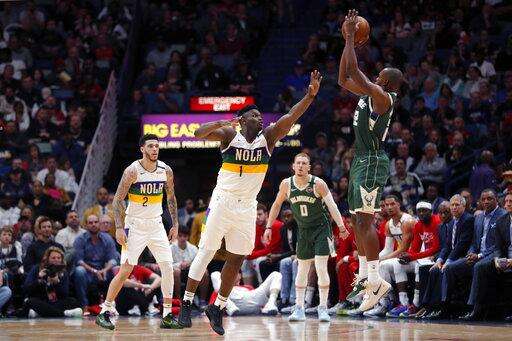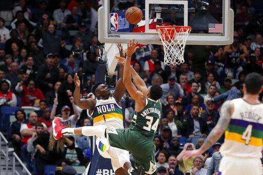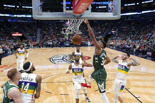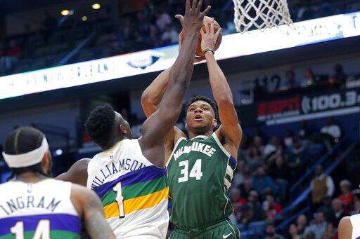 NEW ORLEANS (AP) - Giannis Antetokounmpo had the strength and savvy to outshine rookie sensation Zion Williamson in the latest double-digit triumph for the NBA-leading Milwaukee Bucks.