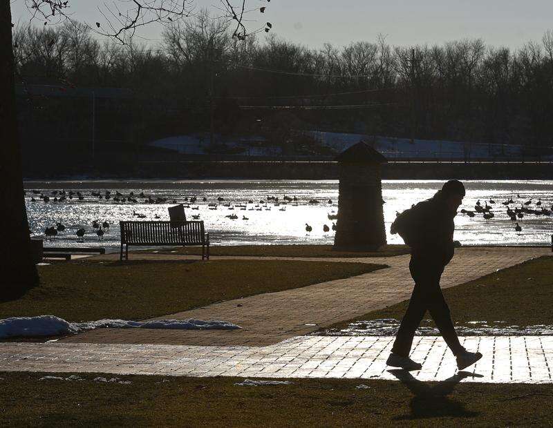 Harry Brock, of St. Charles walks through Pottawatomie Park with a late afternoon sun behind him on Friday in St. Charles.