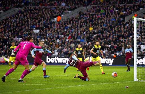 LONDON (AP) - West Ham climbed out of the Premier League's relegation zone by beating Southampton 3-1 on Saturday, with new signing Jarrod Bowen among its scorers on his first top-flight start.