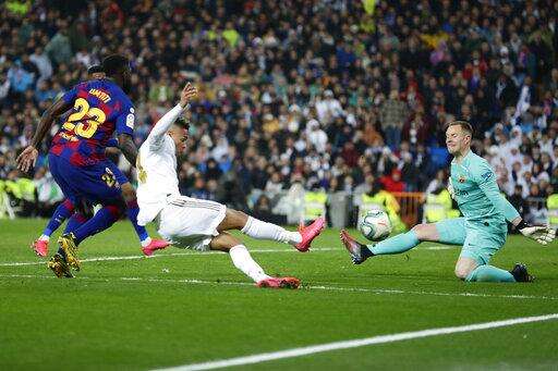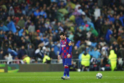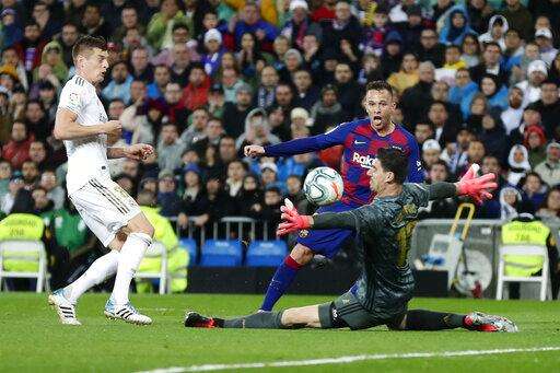 Like Messi, Barcelona midfielder Arthur also was denied by Madrid goalkeeper Thibaut Courtois in a one-on-one breakaway in the first half.