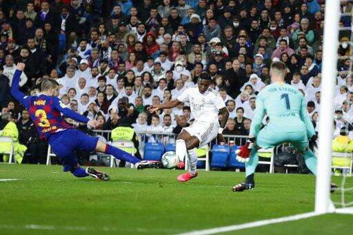 Barcelona looked the most dangerous in the first half but Madrid took control after halftime, opening the scoring after VinÃcius Júnior made a run into the area and found the far corner after a through-ball by Toni Kroos. The ball deflected on Gerard Piqué's leg before getting past Barcelona goalkeeper Marc-André ter Stegen.