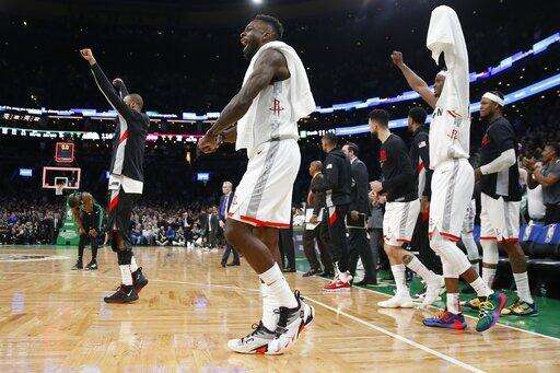 Robert Covington added 16 points and 16 rebounds for the Rockets, who have won six straight and 10 of their last 12 while beating Boston five times in a row.