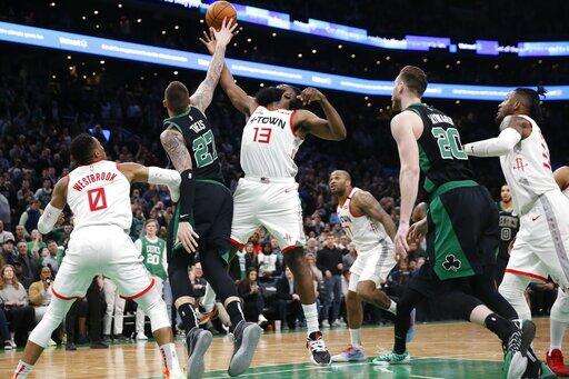 Boston led by as many as 17 in the first half, but the Rockets scored 13 straight points near the beginning of the second to take their first lead of the game 66-64. Boston missed nine straight shots into the fourth quarter and still trailed 102-98 after Westbrook hit one of two free throws with 19 seconds left.