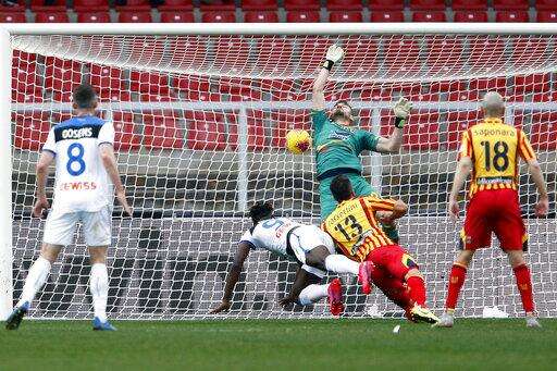 MILAN (AP) - On a day missing one of Serie A's biggest matches, Atalanta offered a spectacle of its own for its traveling fans who had their temperatures checked before Atalanta routed Lecce 7-2 Sunday.