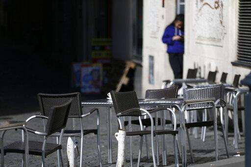 Chairs are empty at a cafe in Largo Argentina square amid growing concern about the spread of a new coronavirus in Rome Saturday, March 7, 2020. Italy is taking an almighty hit to its already weak economy from being the focal point of the coronavirus emergency in Europe. (Cecilia Fabiano/LaPresse via AP) The Associated Press