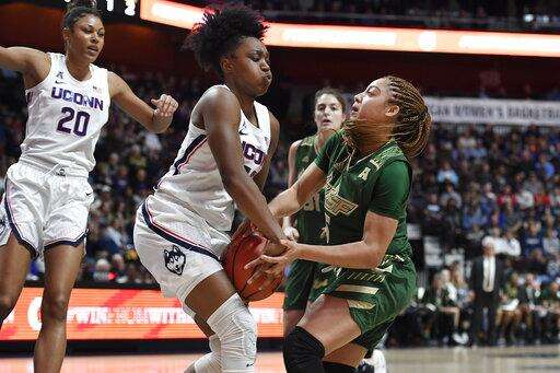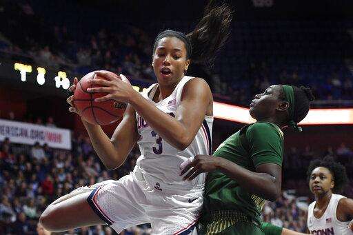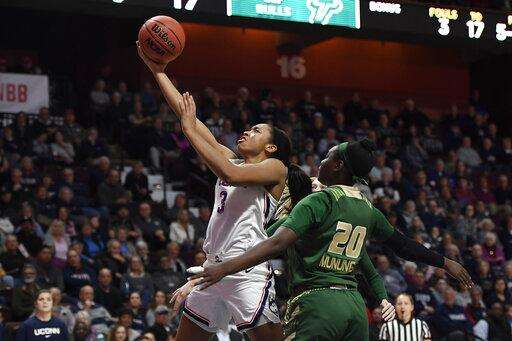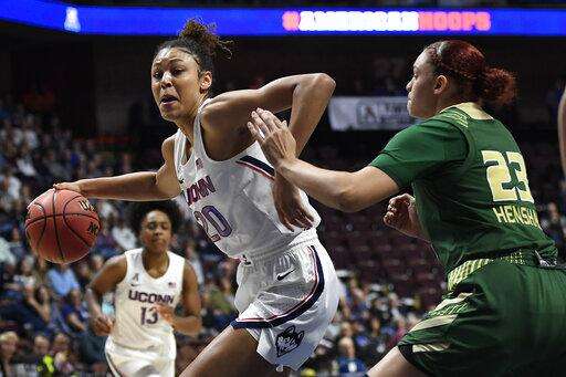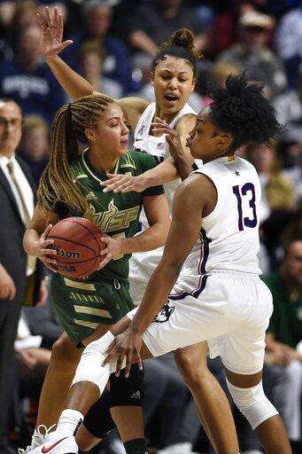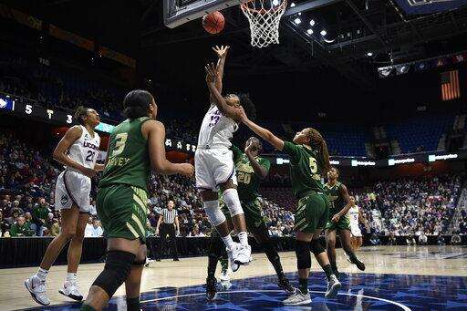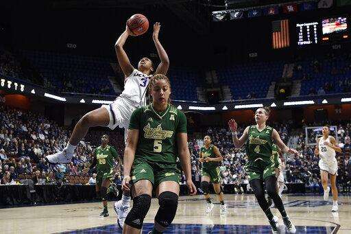 Elena Tsineke had nine points to lead South Florida (19-13), which also lost to UConn in an 80-39 blowout on Monday in the teams' regular-season finale in Hartford.