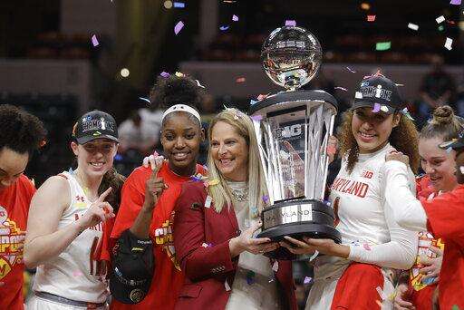 Maryland: Sharika Austin had 14 points and eight rebounds. ... Jones also had 10 rebounds, posting her second double-double in three days, while Owusu finished with six rebounds. ... Blair Watson had 11 points, six rebounds and four steals. ... Taylor Mikesell scored all 12 of her points on 3s. ... Kaila Charles scored six points to move within 16 points of reaching the 2,000-point mark.