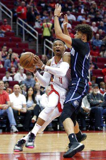 The Rockets used an 11-2 run after that, with five points from Westbrook, to get to 78-57. But Markelle Fultz made two 3-pointers in the next minute to extend Orlando's lead to 84-57 with about seven minutes remaining in the third.