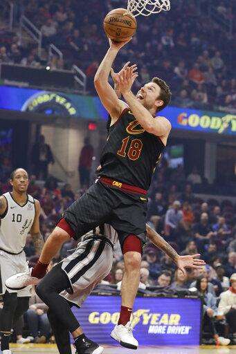 Cleveland Cavaliers' Matthew Dellavedova (18) drives to the basket against the San Antonio Spurs in the first half of an NBA basketball game, Sunday, March 8, 2020, in Cleveland. (AP Photo/Tony Dejak) The Associated Press