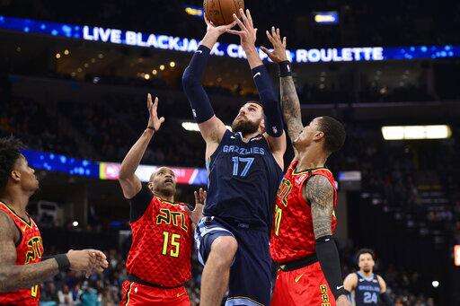 MEMPHIS, Tenn. (AP) - Jonas Valanciunas had 27 points and 17 rebounds, rookie Ja Morant added 24 points and the Memphis Grizzlies beat the Atlanta Hawks 118-101 on Saturday night to keep their hold on the final Western Conference playoff spot.