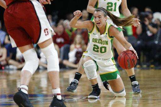 Ionescu had 20 points, 12 assists and eight rebounds to lead No. 3 Oregon to an 89-56 victory over No. 7 Stanford in the Pac-12 tournament title game Sunday night.