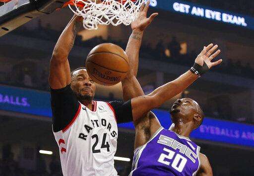 Raptors: Toronto has won six straight against Sacramento dating to 2016. '¦ It was only the 15th time in his career that Gasol came off the bench. He started the previous 35 games he played in this season. '¦ Powell took a half-court bounce pass from Siakam and threw down an emphatic, one-handed dunk against Sacramento's Harry Giles in the first quarter. Powell returned the favor a few moments later when he fed Siakam with an alley-oop lob for a dunk. '¦ Fred VanVleet (left shoulder soreness) is expected back later this week.