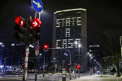 Office lights of the Lombardy region headquarters building in Milan, northern Italy, compose the Italian words 'State a casa' (Stay home), Wednesday, March 18, 2020. Italian authorities say too many people are violating last week's national decree, which allows people to leave homes to go to workplaces, buy food or other necessities or for brief strolls outside to walk dogs or get exercise. For most people, the new coronavirus causes only mild or moderate symptoms, such as fever and cough. For some, especially older adults and people with existing health problems, it can cause more severe illness, including pneumonia.(AP Photo/Luca Bruno)