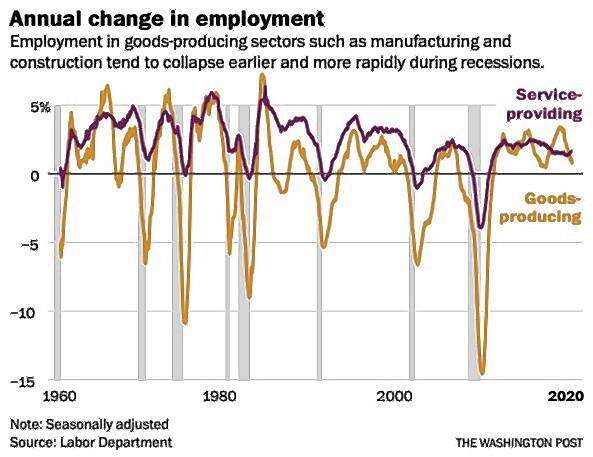 The coronavirus recession is likely to do something that we haven't really seen before: It's going to hammer services, like restaurants and retailers, first.