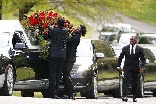 Flowers and moved to the gravesite ahaed of the casket of The Rev. Joseph E. Lowery at the Westview cemetery, Saturday, April 4, 2020, in Atlanta. For more than four decades after the death of his friend and civil rights icon, the Rev. Martin Luther King Jr., the fiery Alabama preacher was on the front line of the battle for equality, with an unforgettable delivery that rivaled King's - and was often more unpredictable. (AP Photo/John Bazemore, Pool)