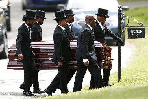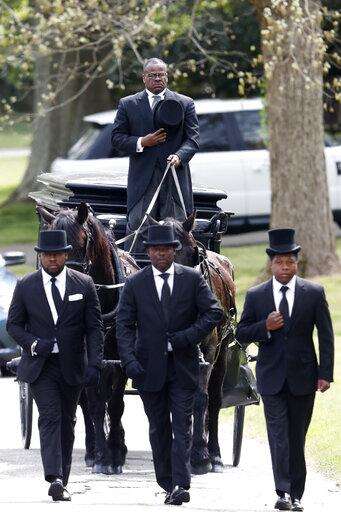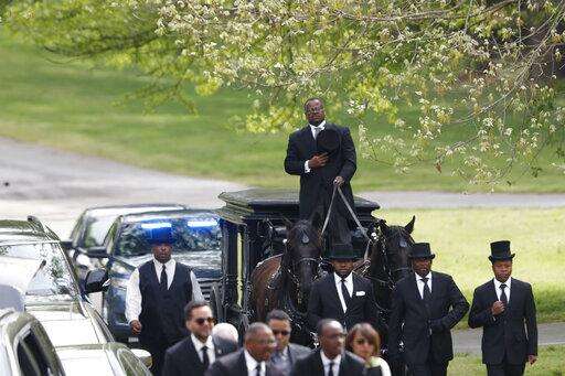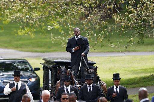The casket of The Rev. Joseph E. Lowery is moved to graveside by horse and carriage at the Westview cemetery, Saturday, April 4, 2020, in Atlanta. For more than four decades after the death of his friend and civil rights icon, the Rev. Martin Luther King Jr., the fiery Alabama preacher was on the front line of the battle for equality, with an unforgettable delivery that rivaled King's - and was often more unpredictable. (AP Photo/John Bazemore, Pool)