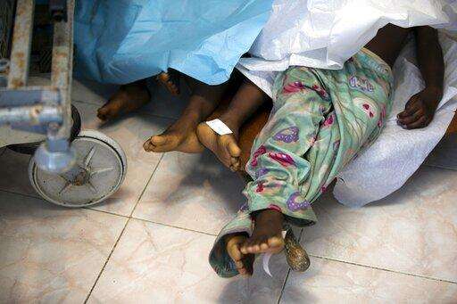 FILE - In this Feb. 14, 2020 file photo, the bodies of children who died in a fire at the children's home run by the Church of Bible Understanding (COBU), lie under a sheet on a bed at Baptiste Mission Hospital in Kenscoff, on the outskirts of Port-au-Prince, Haiti. The previous night, 61 children were sleeping inside the church's two-story home, according to Haiti's children's welfare agency. A teen living there told authorities that she and a caretaker went out to buy candles, which they lit in each of the rooms filled with children, then went to bed. Thirteen children and two caretakers died. (AP Photo/Dieu Nalio Chery, File) The Associated Press