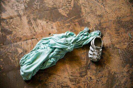 FILE - In this Feb. 14, 2020 file photo, a child's shoe and dress lay inside the children's home run by the Church of Bible Understanding (COBU) where a fire broke out the previous night in Kenscoff, on the outskirts of Port-au-Prince, Haiti. Haitian child welfare authorities say closing an orphanage can take months or years, particularly if the management has money or influence. (AP Photo/Dieu Nalio Chery, File) The Associated Press