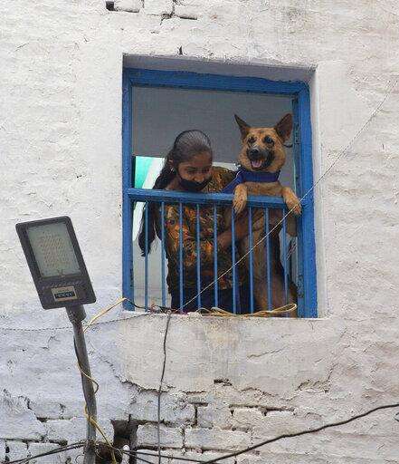 A girl looks out from a window with a dog during lockdown to prevent the spread of new coronavirus in Prayagraj, India, Saturday, April 25, 2020. As governments around the world try to slow the spread of the coronavirus, India has launched one of the most draconian social experiments in history, locking down its entire population, including an estimated 176 million people who struggle to survive on $1.90 a day or less. (AP Photo/Rajesh Kumar Singh) The Associated Press