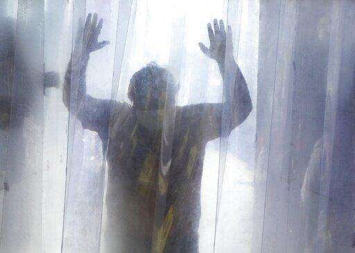 A woman passes through a sanitizer cabin while entering a slum during lockdown to check the spread of the new coronavirus in Mumbai, India, Saturday, April 25, 2020. India is one of the most crowded places on Earth, a nation where social distancing is impossible for millions. Mumbai has a population density of 77,000 people per square mile, nearly three times higher than New York City, which crowding helped turn into one of the world's deadliest epicenters. (AP Photo/Rajanish Kakade) The Associated Press