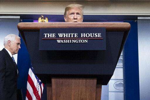President Donald Trump speaks about the coronavirus, with Vice President Mike Pence nearby, in the James Brady Press Briefing Room of the White House, Friday, April 24, 2020, in Washington. (AP Photo/Alex Brandon) The Associated Press
