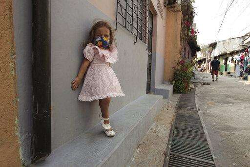 Five-year-old Fernanda Serrato poses in front of her house wearing a homemade mask to protect her from the spread of the new coronavirus, in the Papini community of San Salvador, El Salvador, Thursday, April 23, 2020. When the coronavirus appeared, President Nayib Bukele closed the borders and airports and imposed a mandatory home quarantine for all except those working in the government, hospitals, pharmacies or other designated businesses. People were allowed out only to buy groceries, and violators were detained, with more than 2,000 being held for 30-day stints. (AP Photo/Salvador Melendez) The Associated Press
