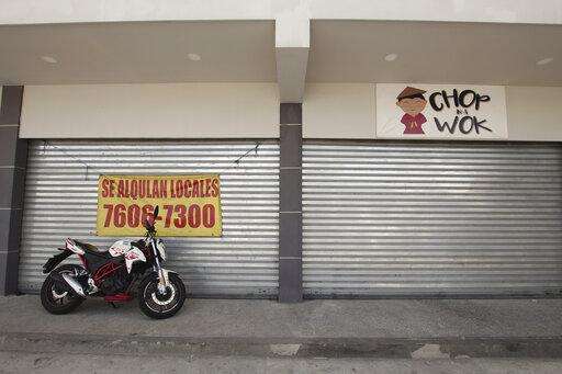 A sign that reads in Spanish 'œLocals for rent' and a restaurant sign hang next to each other at the site of a closed local, during the quarantine designed to help slow the spread of the new coronavirus, in San Salvador, El Salvador, Monday, April 20, 2020. (AP Photo/Salvador Melendez) The Associated Press