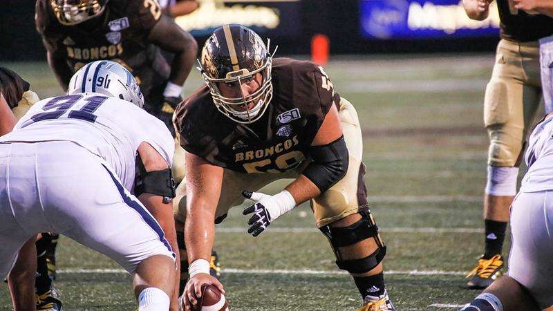 Luke Juriga, at center for Western Michigan University, has signed with the Philadelphia Eagles. Courtesy of Western Michigan athletics