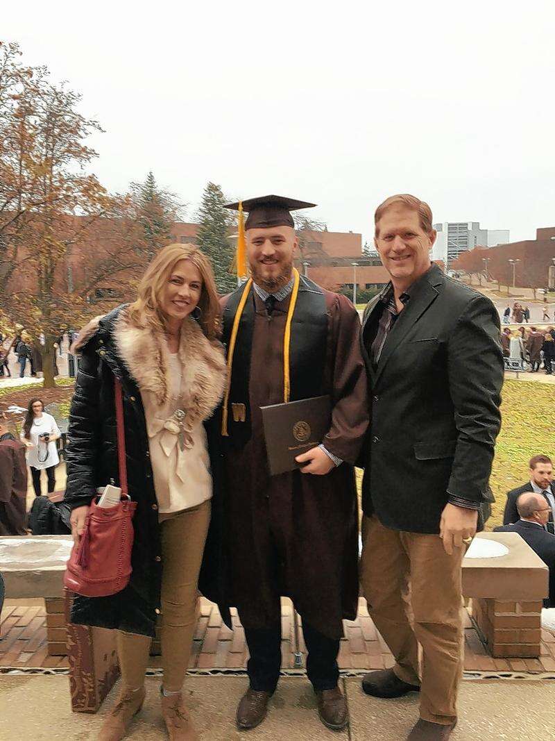 Luke Juriga at his graduation from Western Michigan University with his parents Denise and Jim. Courtesy of the Juriga family