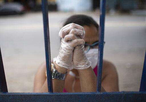 Andrea Silva, 44, waits for the results of her father's COVID-19 disease test at the Marechal Hermes Urgent Care Unit, amid the new coronavirus pandemic in Rio de Janeiro, Brazil, Wednesday, May 6, 2020. (AP Photo/Silvia Izquierdo)
