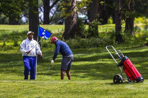 The Sligo Creek Golf Course in Silver Spring, Md., is opened Monday, May 11, 2020, as Maryland Gov. Larry Hogan opened golf courses in the initial stage in easing coronavirus shutdown. As states push for some return to normal business operations, elected officials in the Virginia and Maryland suburbs surrounding Washington, D.C., are unwilling to quickly reopen, as they confront COVID-19 infection and fatality numbers that are the highest in their states. (AP Photo/Manuel Balce Ceneta)