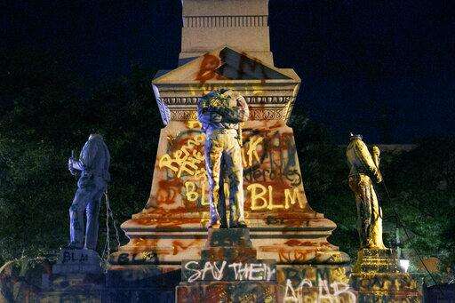 RICHMOND, Va. (AP) - Protesters pulled down a century-old statue of Confederate President Jefferson Davis in the former capital of the Confederacy, adding it to the list of Old South monuments removed or damaged around the U.S. in the wake of George Floyd's death.