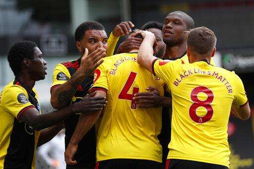However, there was more late drama as Watford center back Craig Dawson executed a bicycle kick for a brilliant equalizer in the third minute of stoppage time for his relegation-threatened team. Dawson was also hugged by teammates after a goal that moved Watford a point above the relegation zone.